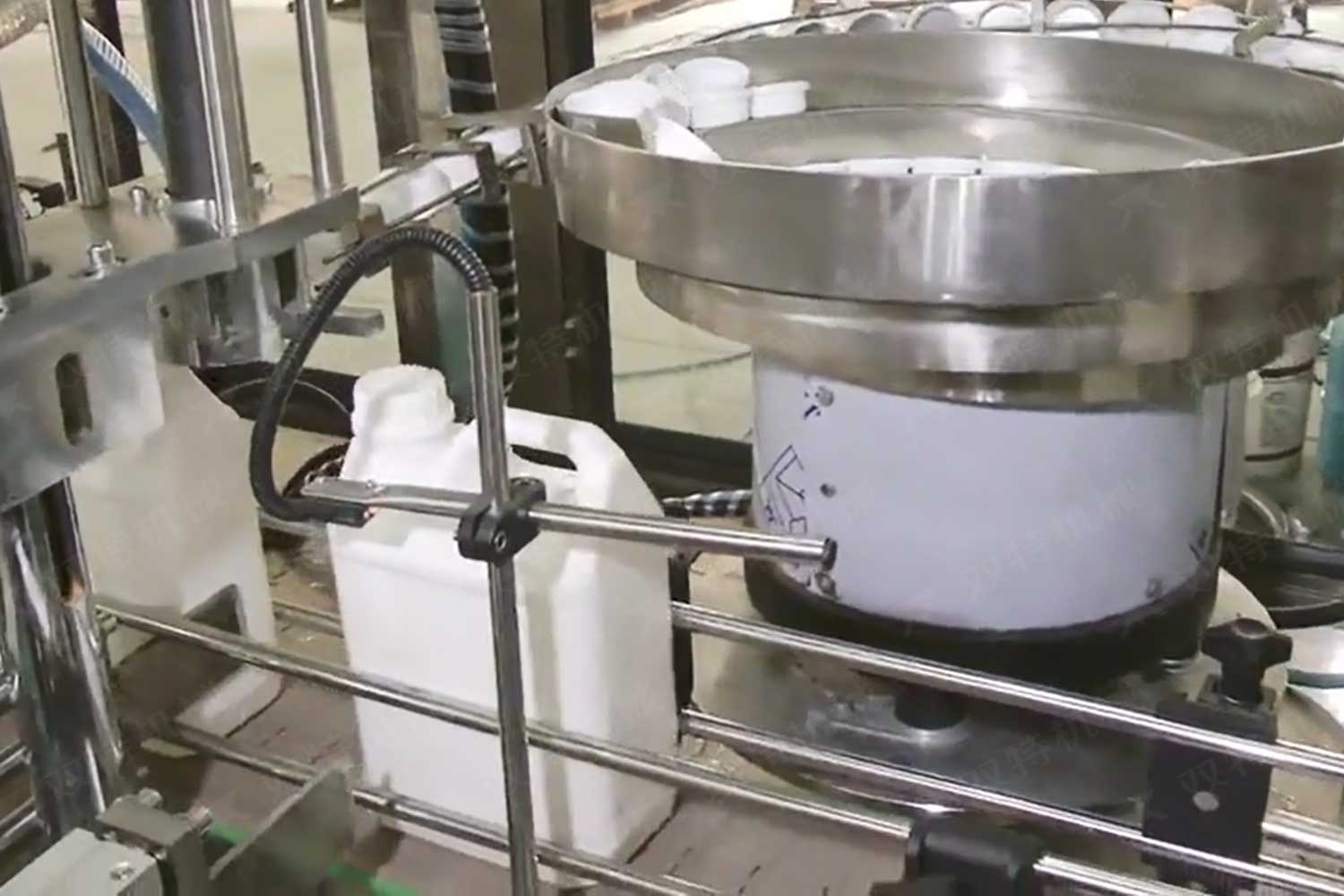 旋蓋機主要用于玻璃廣口瓶的三、四、六鐵蓋真空旋蓋,用兩根不同速度的皮帶壓瓶蓋,因兩根皮帶的速度不同,對蓋進行搓蓋收緊達到旋蓋目的。在自動上蓋之前對瓶口吹蒸汽加熱,吹掉冷空氣,換上高溫蒸汽,立即旋蓋,根據熱脹冷縮原理,蒸汽冷下來就自然形成了瓶內真空,達到了真空旋蓋的目的。自動旋蓋機可以和濃醬灌裝機、蜂蜜灌裝機、辣椒醬灌裝機組合在一起,形成一套全自動灌裝設備,是現代調味品企業的得力幫手。
